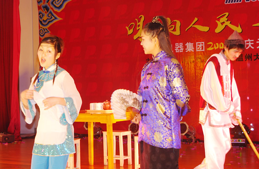 晚會在輕松愉快的音樂中拉開了序幕。主持人黃兆超、林樂丹分別介紹了各位領導和嘉賓。蒞臨現場的有柳市鎮總工會主席紹春微、長虹村黨支部副書記鄭銀余、溫州大學甌江學院副院長吳一琦以及人民電器集團監事長包巨文、進出口公司總經理葉向宇、儀器儀表公司董事長鄭緯宇等有關部門領導。