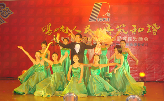 本網訊 歡聲笑語辭舊歲,鶯歌燕舞迎新年。12月28日18時30分,由人民電器集團、溫州大學甌江學院和柳市鎮長虹村共同舉辦的《唱響人民·共筑和諧》2008年慶元旦迎新春聯歡晚會在集團總部多功能廳隆重舉行。正在外地考察工作的鄭元豹董事長、葉玉森總經理發來賀電,預祝晚會取得圓滿成功,祝愿全體員工新年快樂,萬事如意。